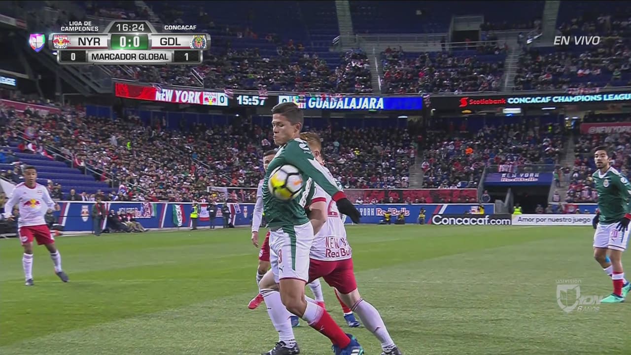 El ariete de Chivas se metió al área para rechazar un tiro de esquina y, en un intento por bajar el balón con el pecho, el esférico hizo contacto con su brazo y Nueva York pidió penalti.