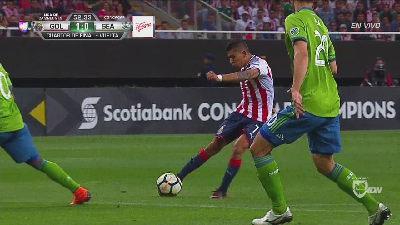 Pizarro cedió para el ‘7’ de Chivas que le pegó un derechazo potente que se fue a un lado. Se salva el Sounders del 2-0.