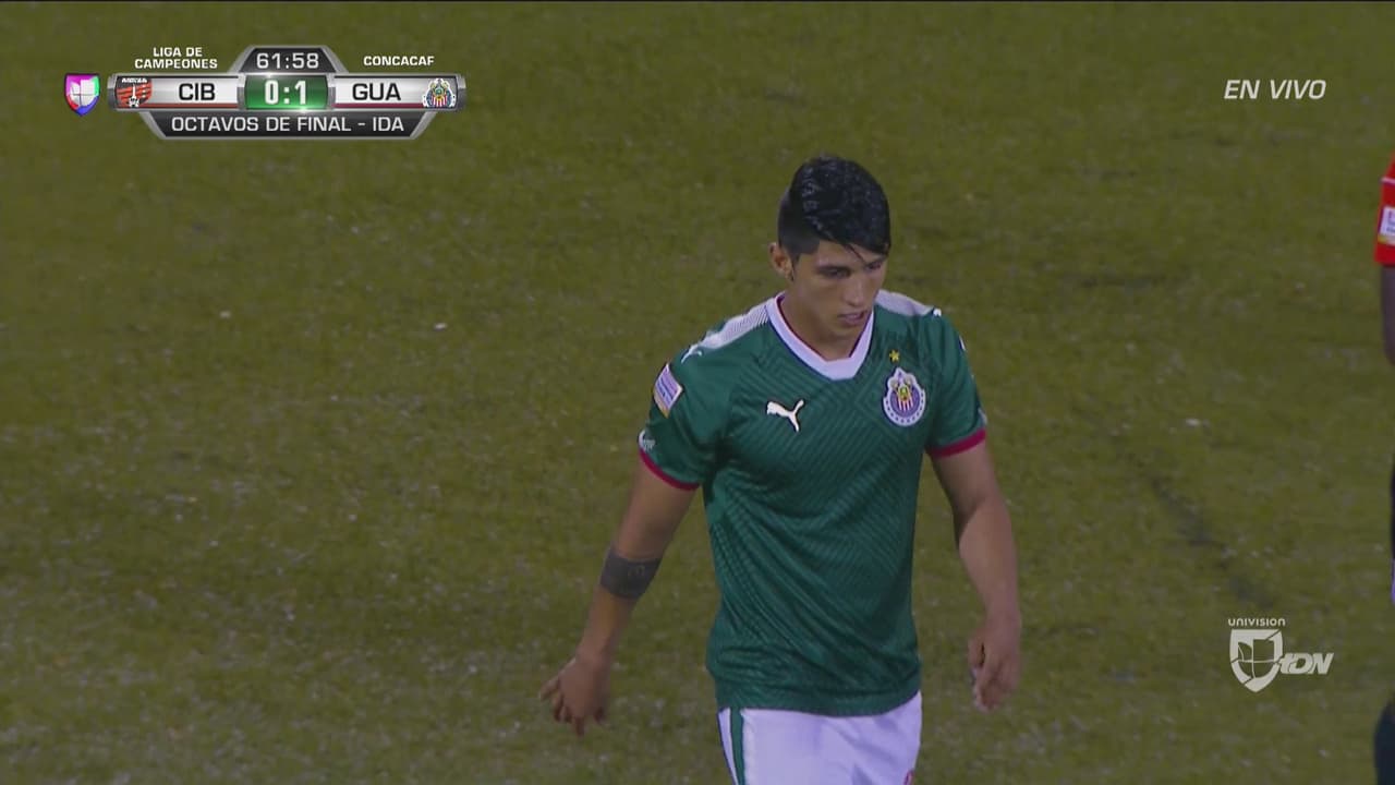 En la primera llegada del segundo tiempo, el 9 de las Chivas no pudo definir de buena manera y mandó su disparo a la tribuna.