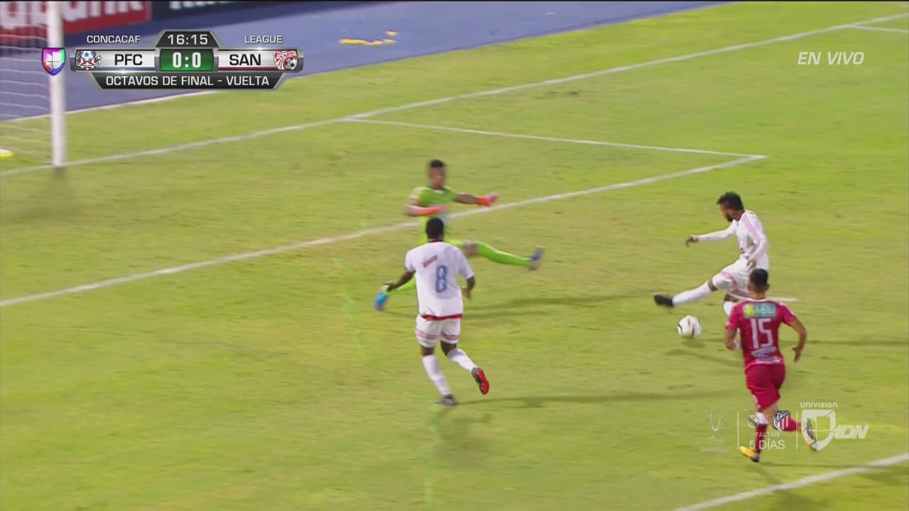 El delantero del conjunto jamaiquino bajó la pelota de gran forma, se puso mano a mano y luego sacó un feo calcetinazo cuando tenía todo.