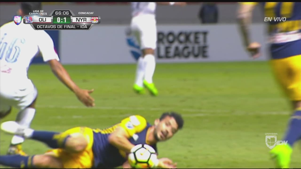 El mediocampista brasileño del New York Red Bulls se salvó de la roja al cortar deliberadamente un ataque de Olimpia cubriendo el balón con brazos y cuerpo. Solo fue amonestado.