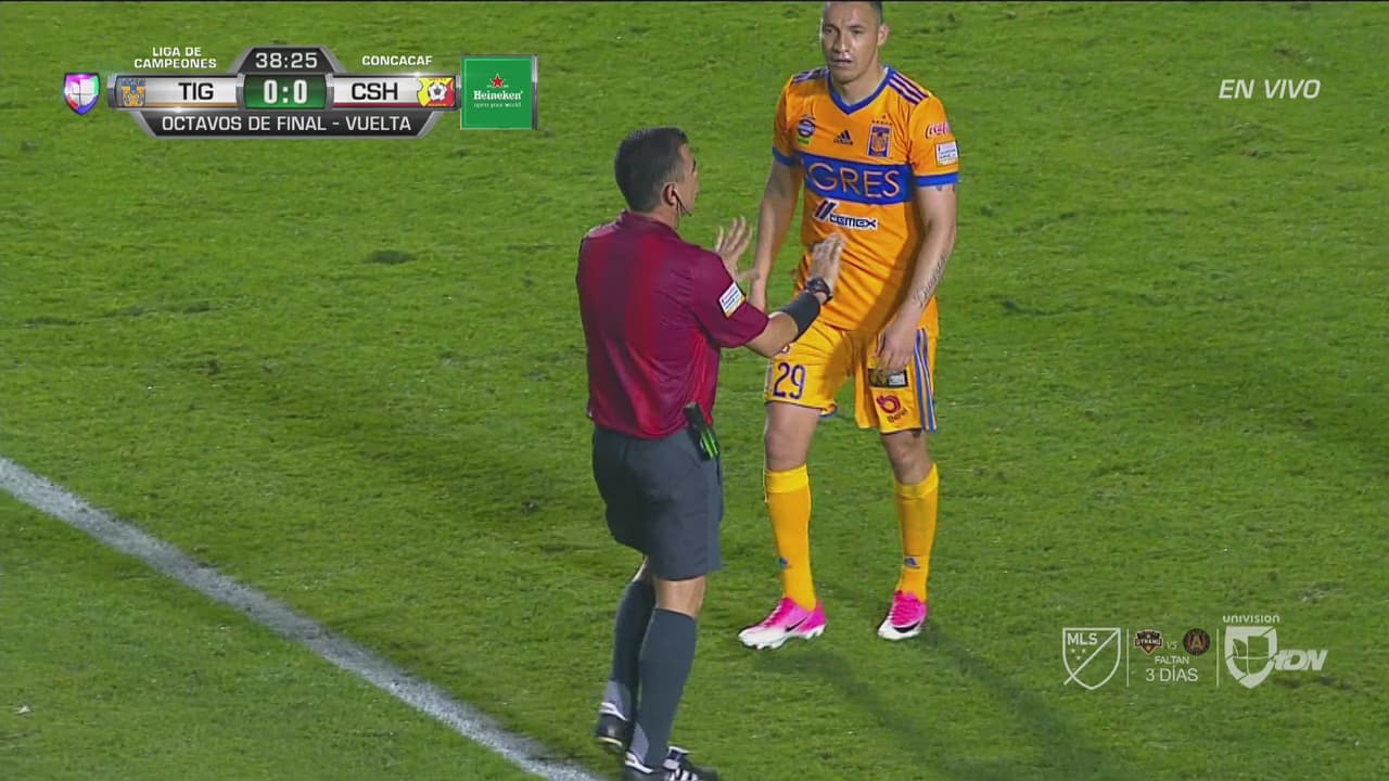 Enner Valencia cayó en el área quejándose de un jalón defensivo, pero el silbante central hizo mutis pese a los reclamos de Edu Vargas. El club de la UANL no logra abrir el marcador contra el Herediano.