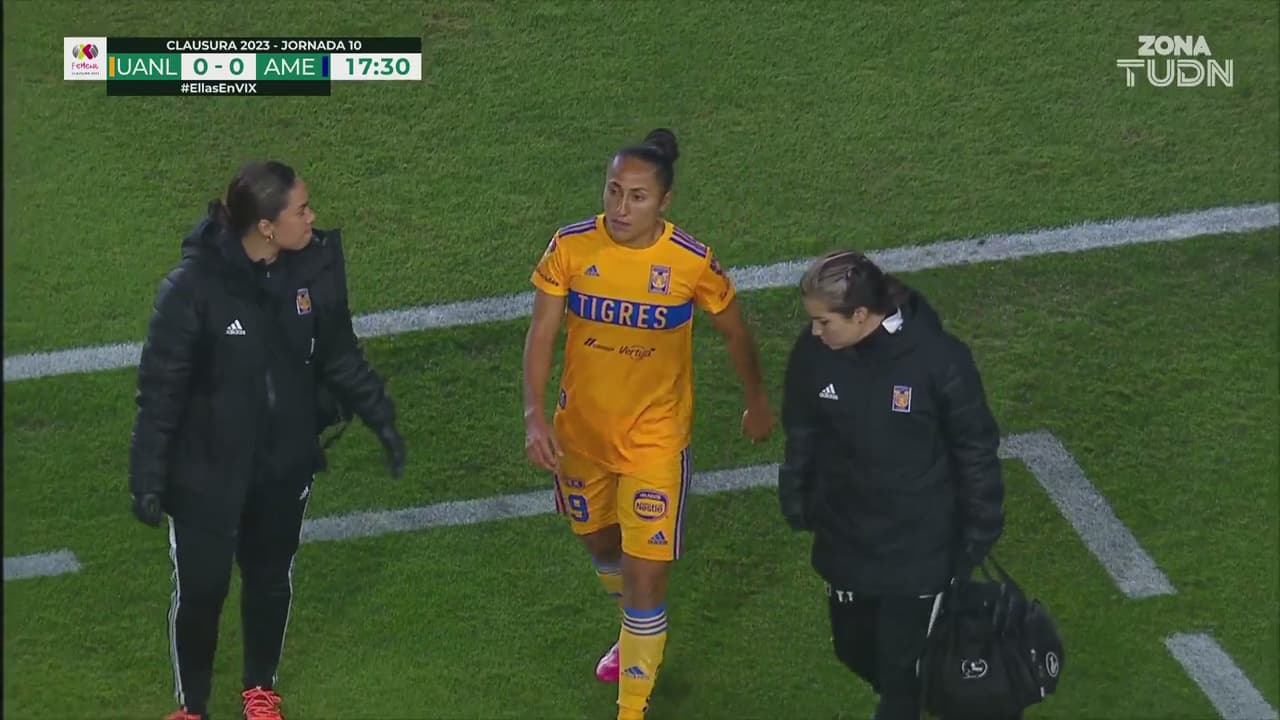Eva González recibió sólo amarilla por entrada por detrás a la delantera de los Tigres, quien no pudo seguir.