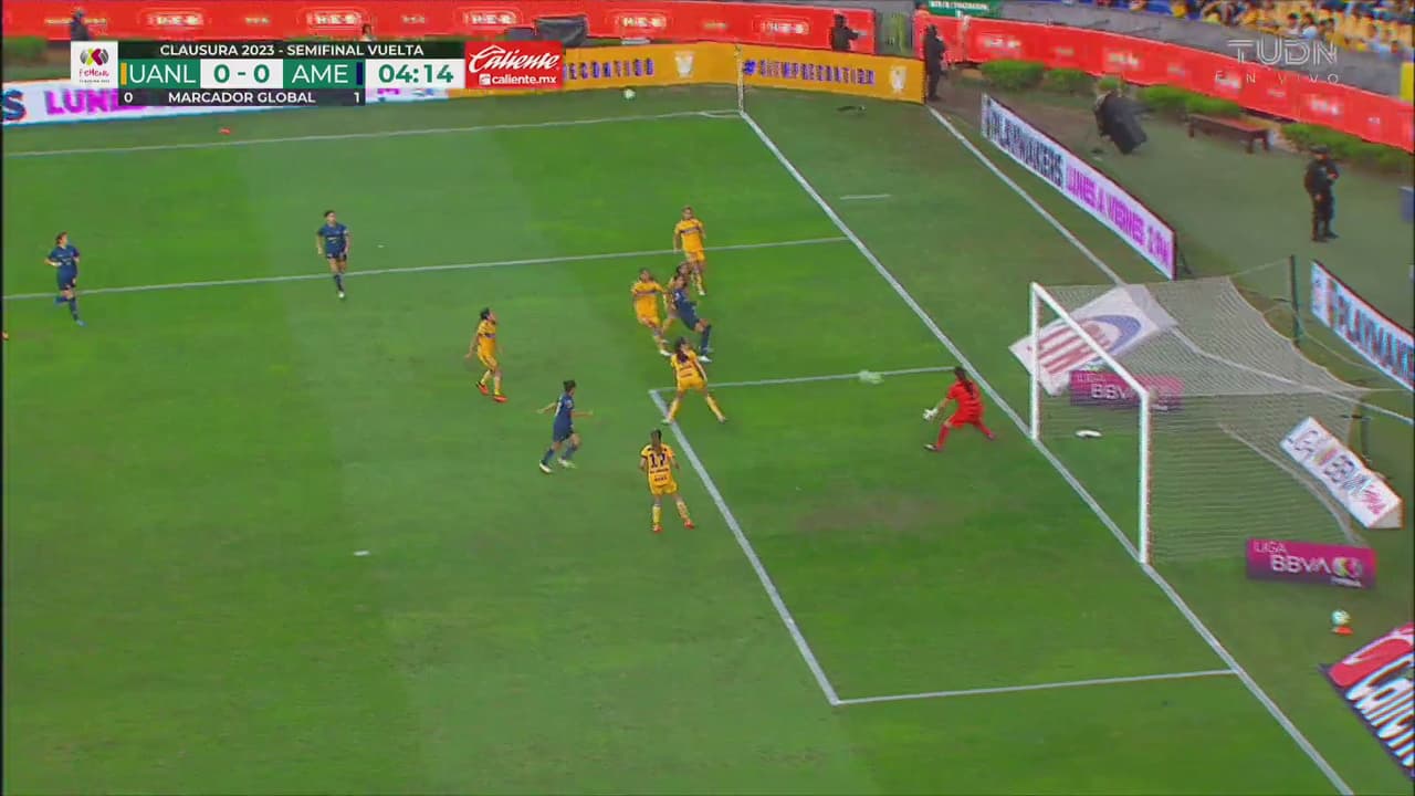 Gran túnel de Alison luego de un recorte quedando cerca de la meta felina, sacando punterazo que ataja Cecilia.