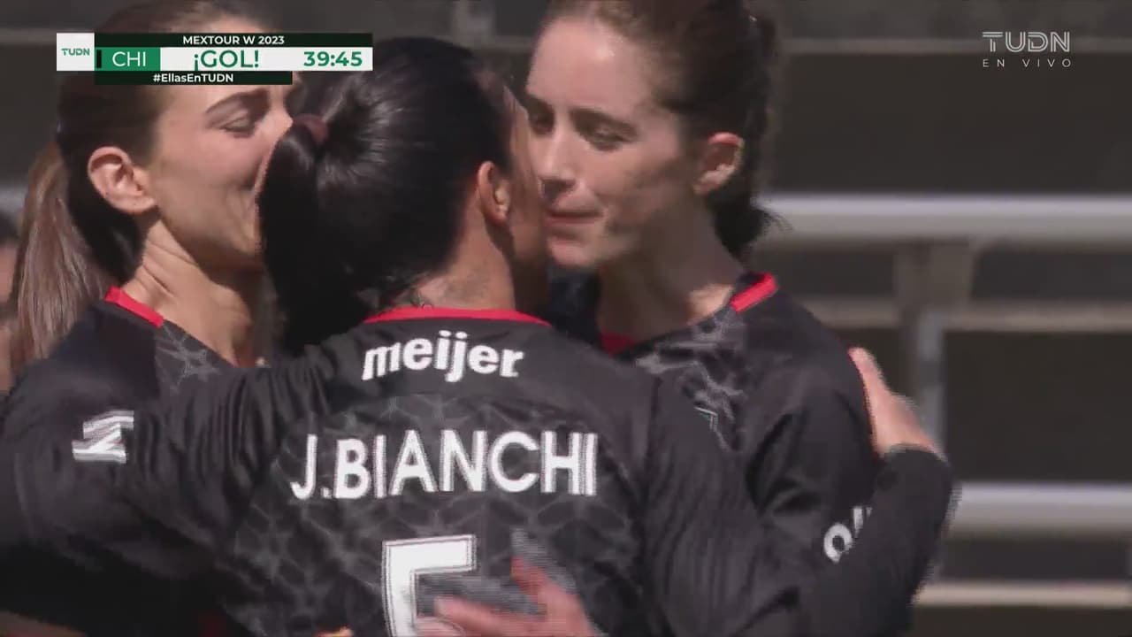 Julia sorprende a las mexicanas desde el saque de esquina y pone el 1-3 en el marcador.