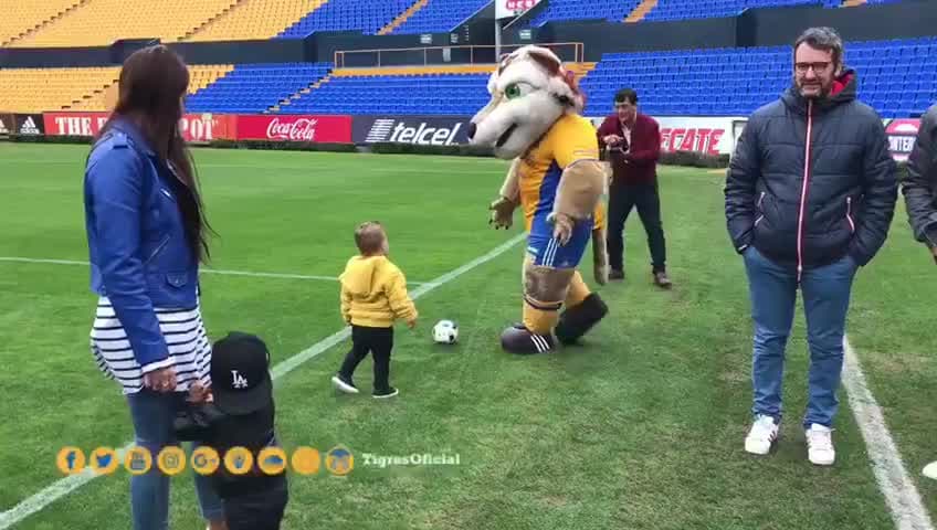Durante un entrenamiento del equipo, el hijo del delantero francés y figura de Tigres empieza a dar sus primeras patadas al balón, esta vez con la mascota del equipo como principal testigo. Como dice el dicho, “hijo de tigre sale pintado”.