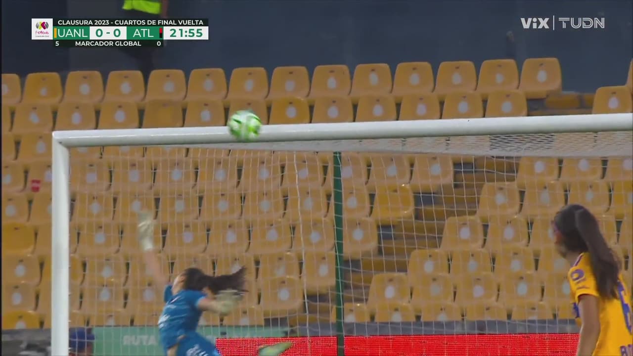 La mediocampista de Tigres le pegó de lejos y casi ponía la bola en el ángulo, pero el metal evitó el tanto.