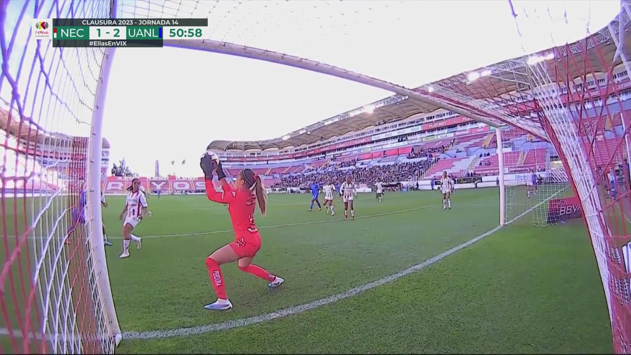 Buen centro de Jacqui Ovalle por izquierda que la 18 de Tigres no pude mandar a la red al 51’.
