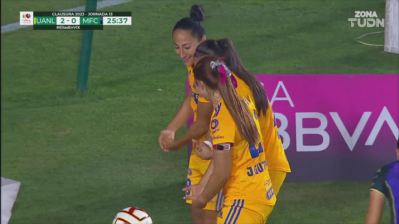 ¡Festejo con dedicatoria! Mayor la empuja y marca el 2-0 de Tigres