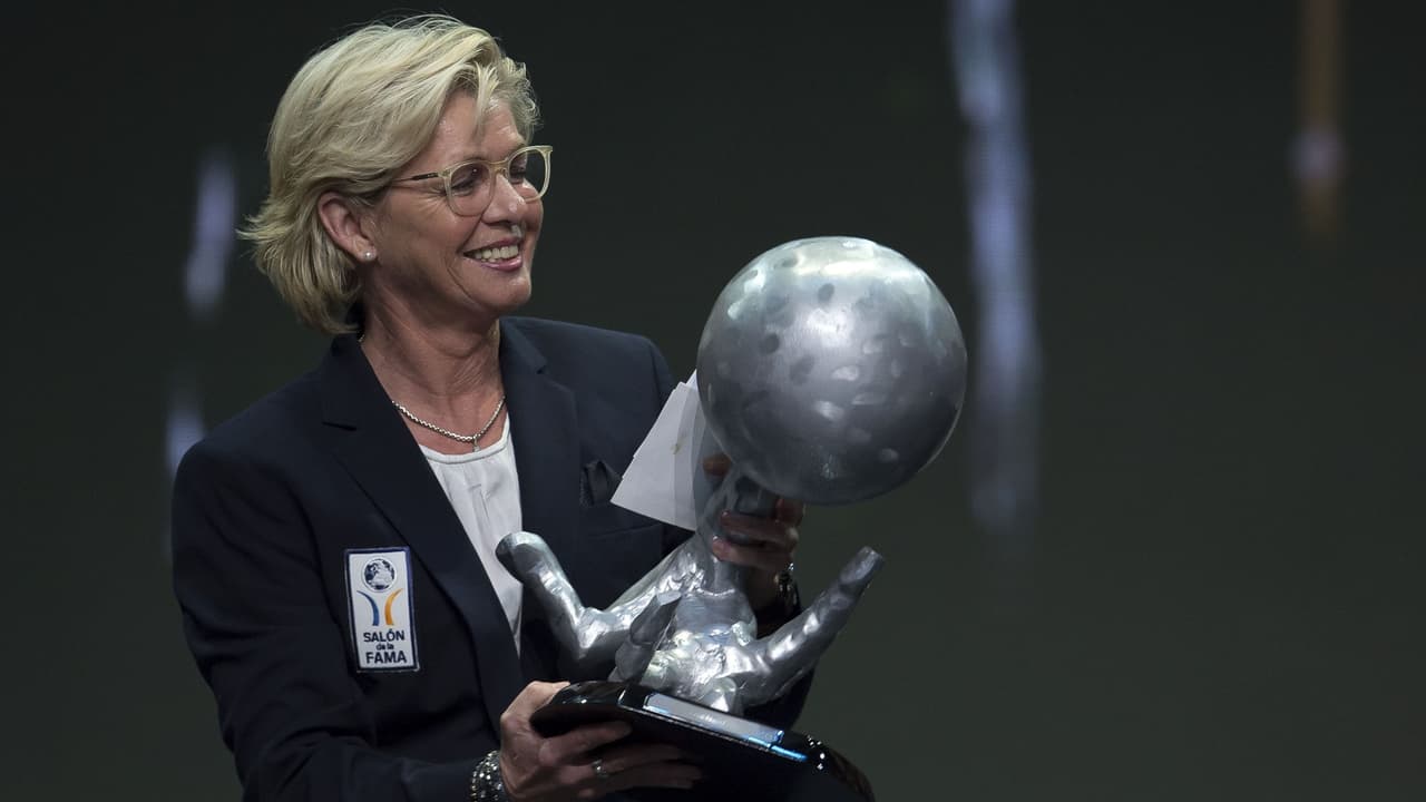 La laureada entrenadora y exfutbolista alemana Silvia Neid fue la primera de las dos mujeres que ingresaron al Recinto en la clase 2018.