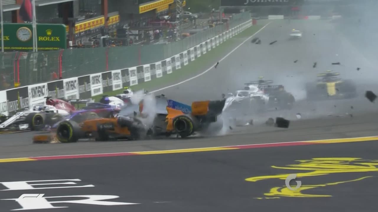¡Accidentado inicio! Alonso y Hulkenberg chocan en el arranque del GP de Bélgica