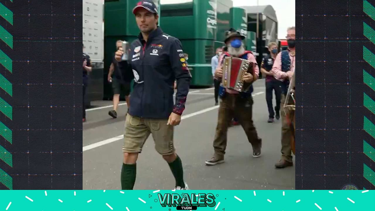 El piloto mexicano fue ‘engañado’ y salió vestido con un atuendo típico para la carrera en Austria.