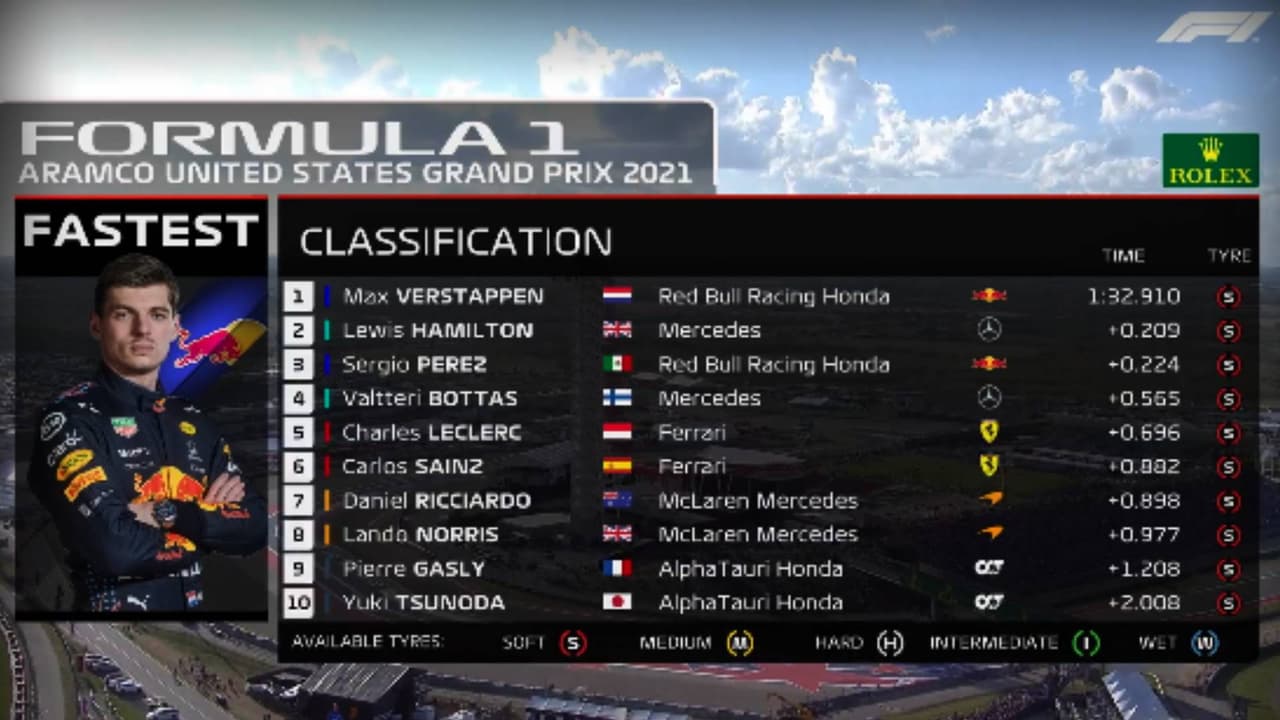 Hamilton había logrado mejorar, pero Verstappen se metió en la Pole position con 1:32.910 desplazando al británico y Checo Pérez cerró en tercero en un trabajo que le alabó Christian Horner: "Increíble esfuerzo el día de hoy, Checo, bien hecho", se escuchó por la radio del mexicano.