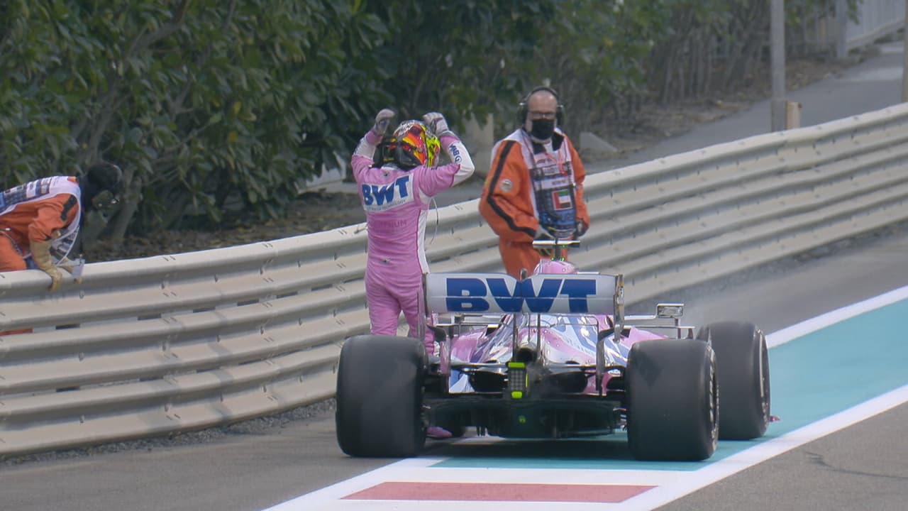 El piloto mexicano Sergio Checo Pérez tuvo que abandonar anticipadamente el Gran Premio de Abu Dhabi de Fórmula 1 por un problema mecánico y así se termina la temporada 2020 y su última carrera con Racing Point.