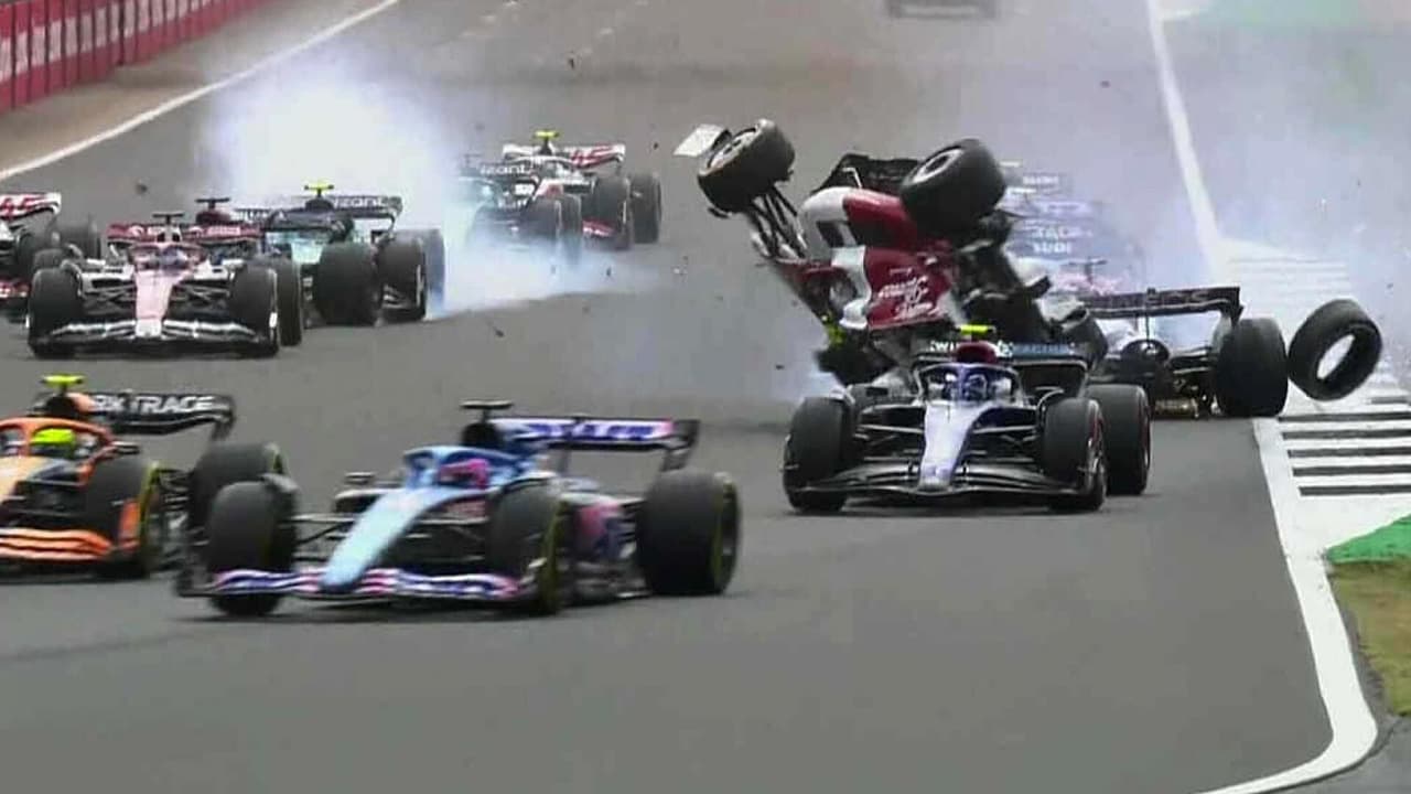 Tras el accidente de Guanyu Zhou y la recuperación de los autos, la carrera se arrancó en las posiciones originales y Checo Pérez tuvo una buena salida, tanto que de inmediato fue a tapar el paso de Charles Leclerc con quien se tocó en un par de ocasiones y obligó a que pronto entrara el mexicano a los pits, mientras que Max Verstappen tomó el liderato de la carrera por delante de Carlos Sáinz.