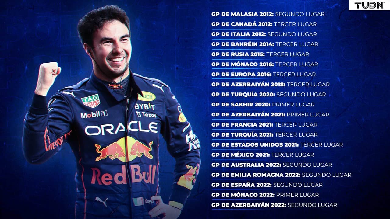 Sergio Pérez sumó así el segundo lugar en el GP de Azerbaiyán a las segundas posiciones del GP Australia, GP Italia y el GP de España, además del primer lugar en el GP de Mónaco.