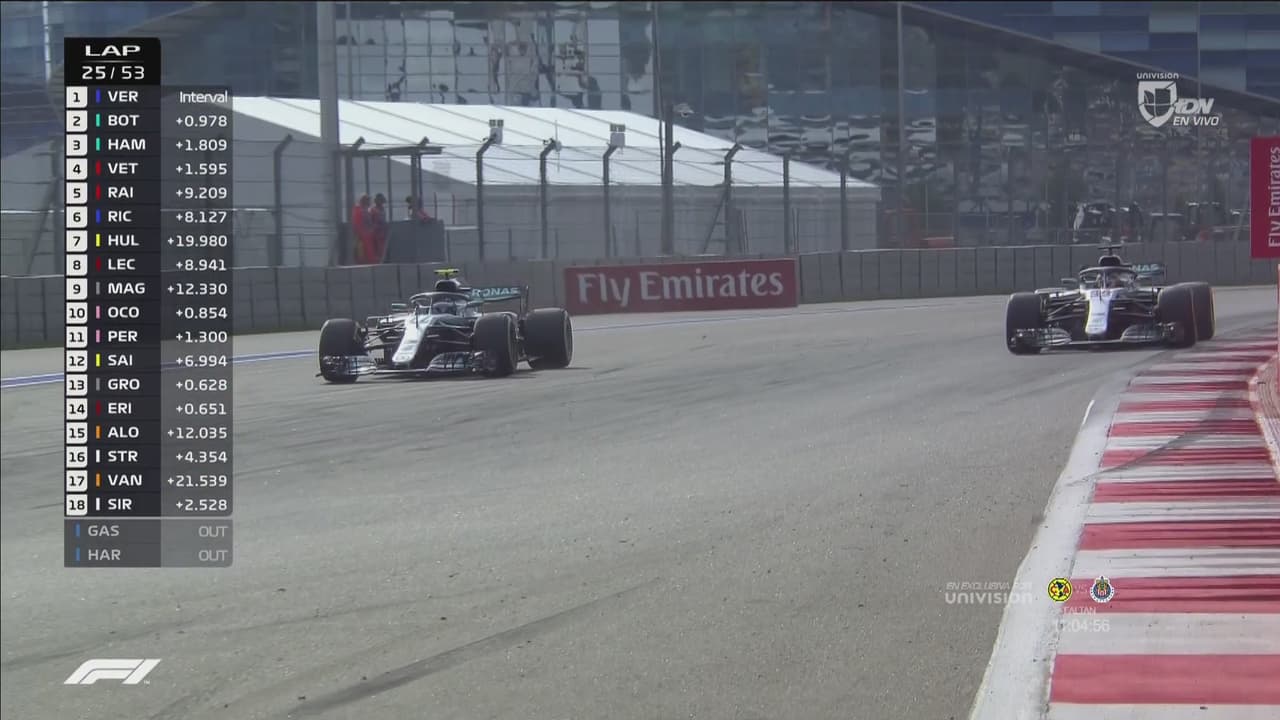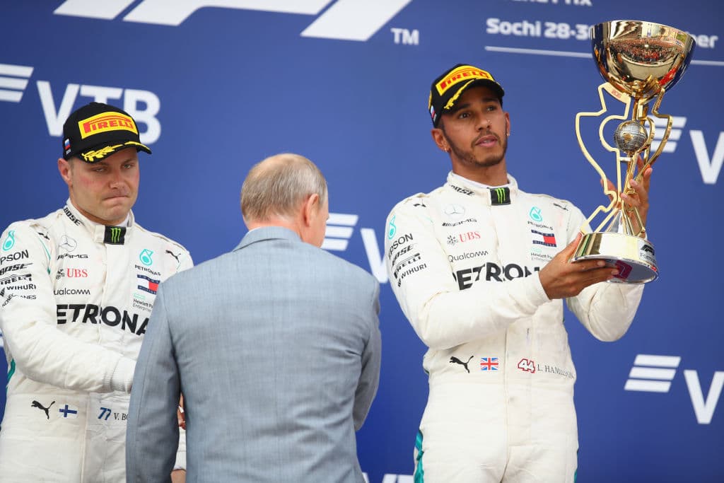 El británico Lewis Hamilton conquistó el Gran Premio de Rusia, 16ª prueba del Mundial de F1, después de que Mercedes le ordenara a su compañero Valtteri Bottas que le permitiera alcanzar el primer puesto, una maniobra autorizada.