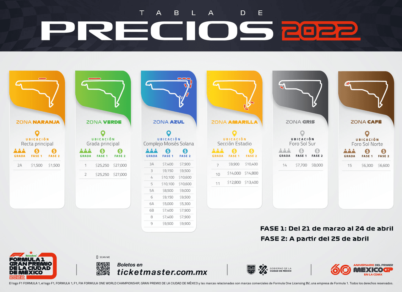 Se dieron a conocer los precios de las entradas al Gran Premio de México que se llevará a cabo el próximo 28 a 30 de octubre como parte de la nueva temporada de la Fórmula Uno 2022.