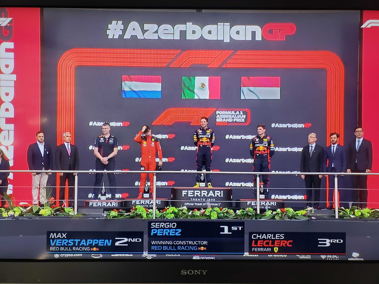 Una confusión se presentó este domingo en la premiación de la carrera tras el triunfo del mexicano Checo Pérez.