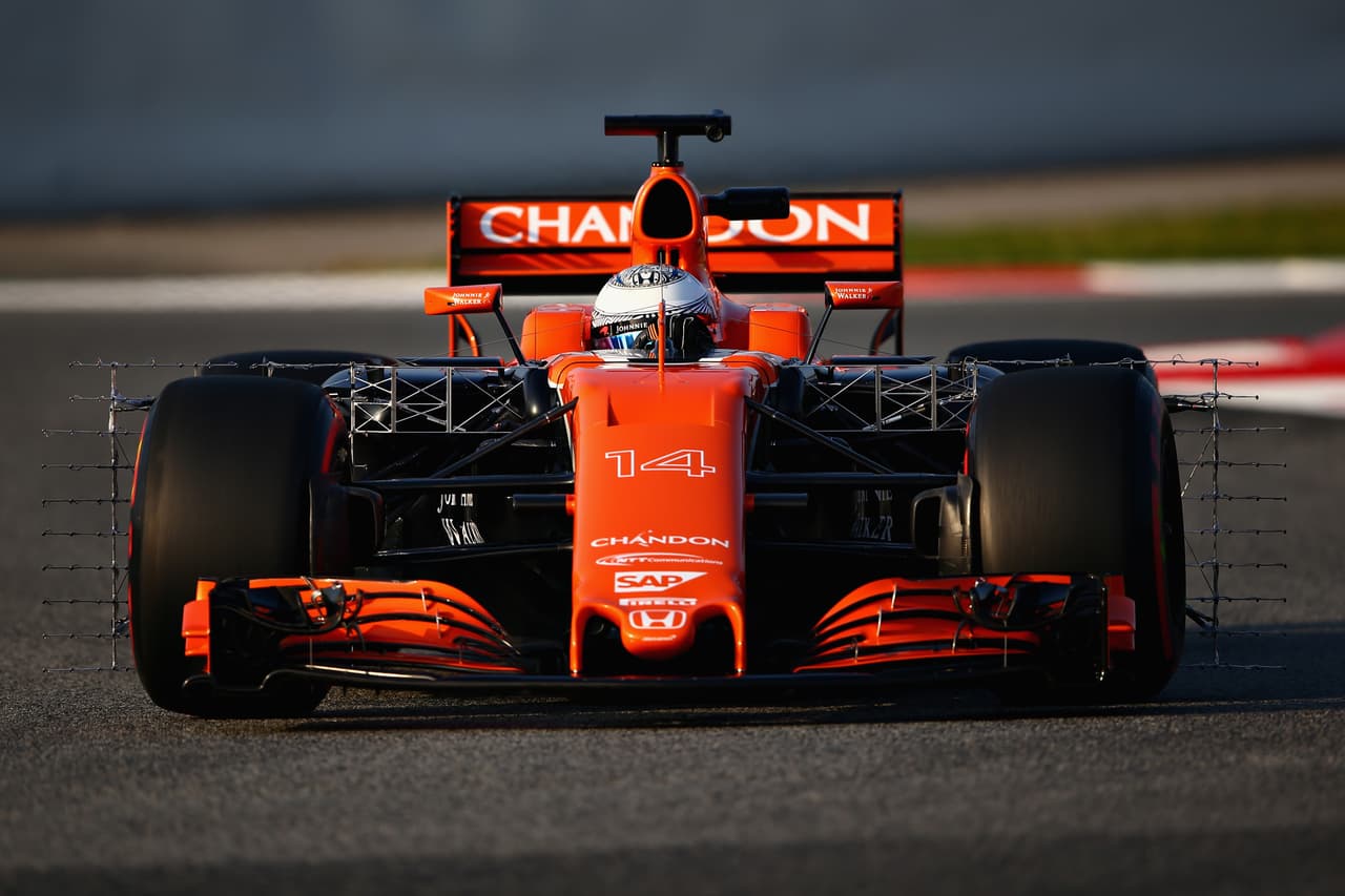 Este es el McLaren MCL32 en los primeros ensayos de la pretemporada en el circuito de Cataluña. Fernando Alonso y Stoffel Vandoorne serán los pilotos.