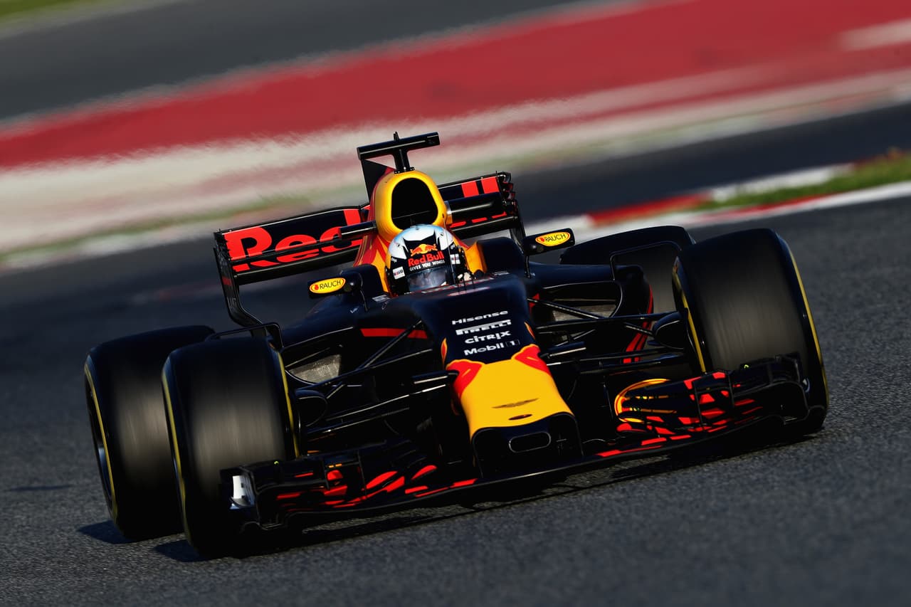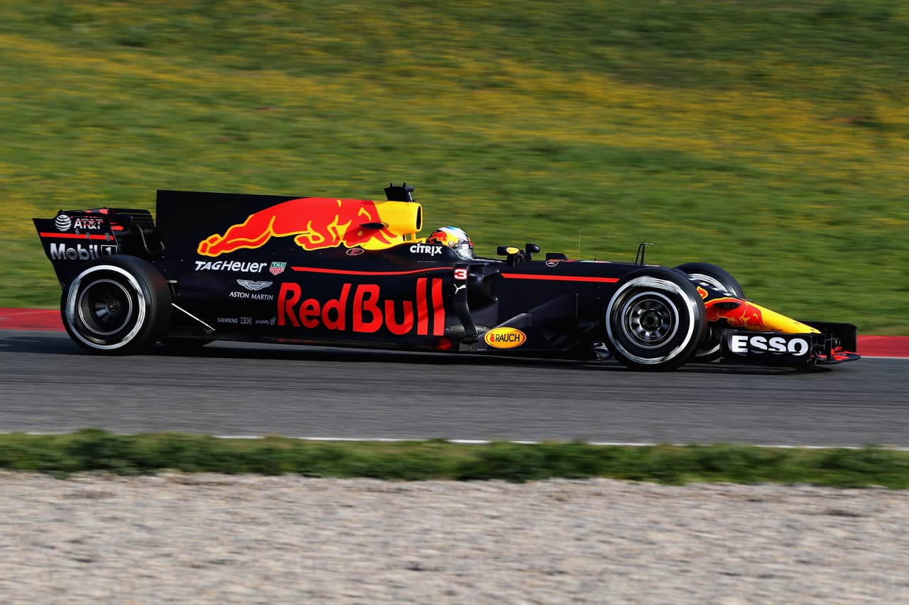 Acá el nuevo RB13 de la escudería Red Bull Racing durante la pretemporada en Cataluña. Daniel Ricciardo y Max Verstappen serán los pilotos del equipo.