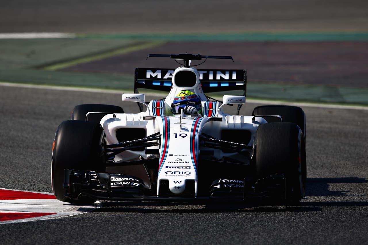 El nuevo Williams FW40 durante los primeros giros de la pretemporada en el circuito de Cataluña. Felipe Massa y Lance Stroll serán los pilotos.