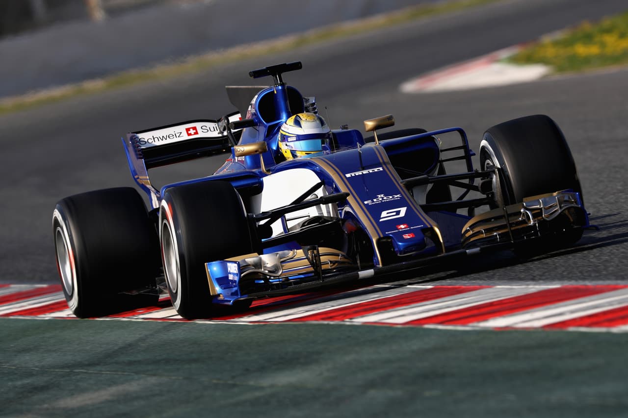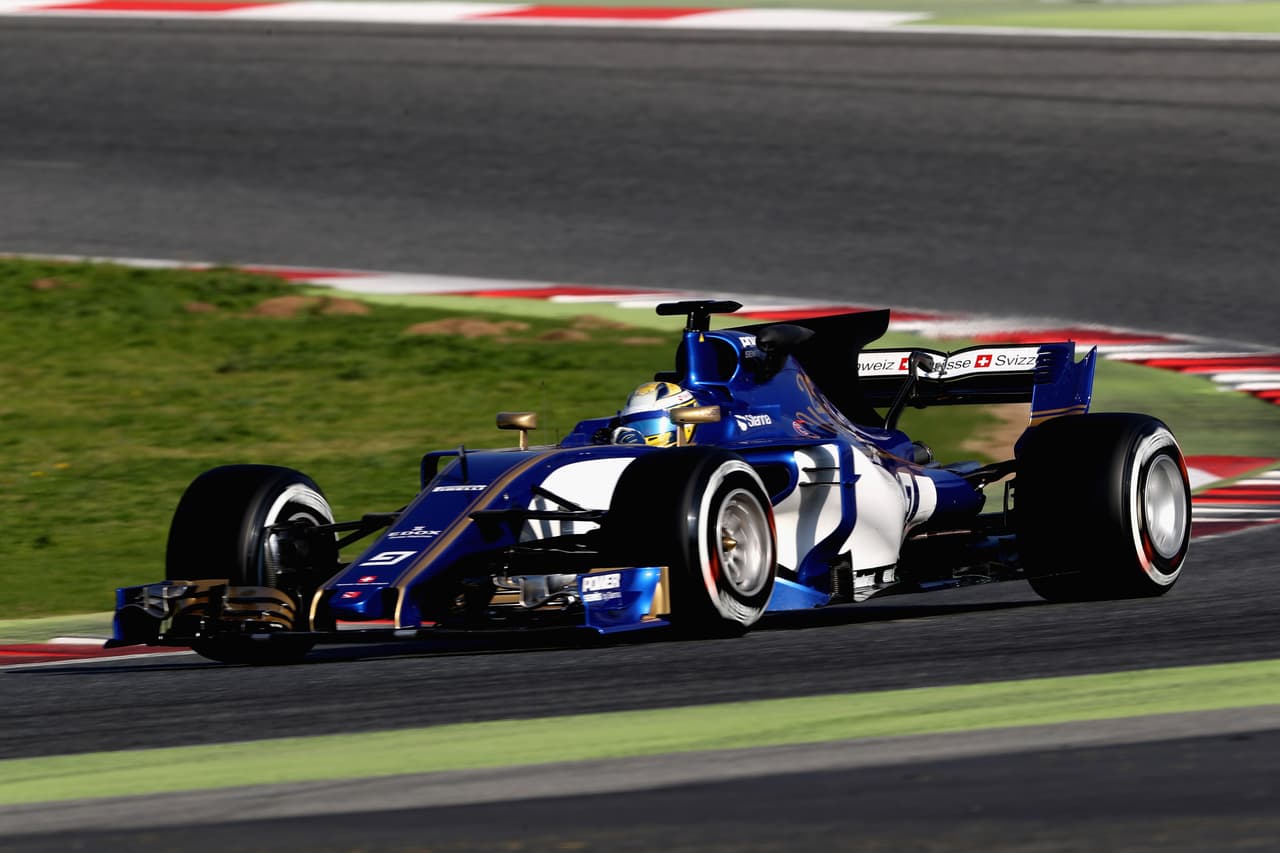 El nuevo Sauber C36 para la temporada 2017 durante los ensayos en Cataluña. Marcus Ericsson y Pascal Wehrlein serán los pilotos del equipo.