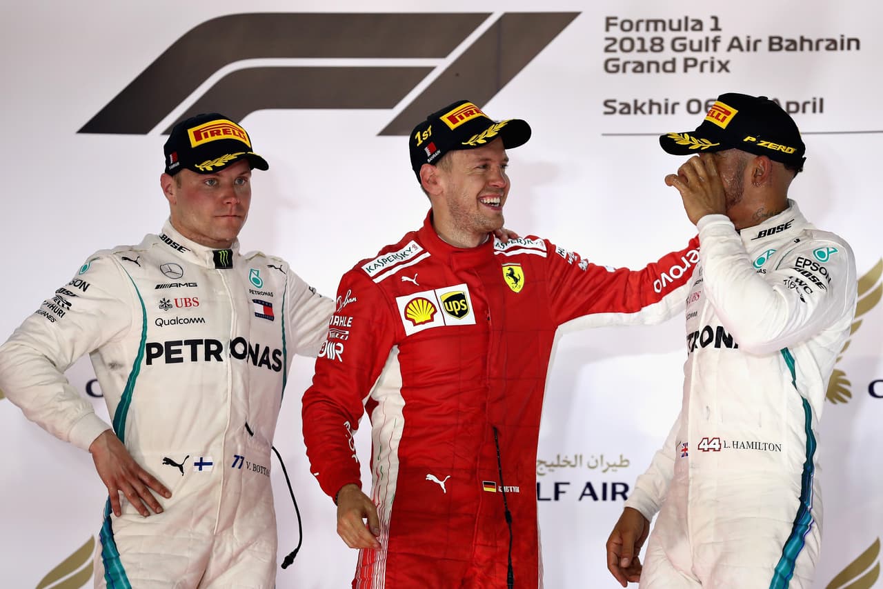 El podio del Gran Premio de Bahréin estuvo completado por el piloto finlandés Valtteri Bottas y por el inglés Lewis Hamilton.