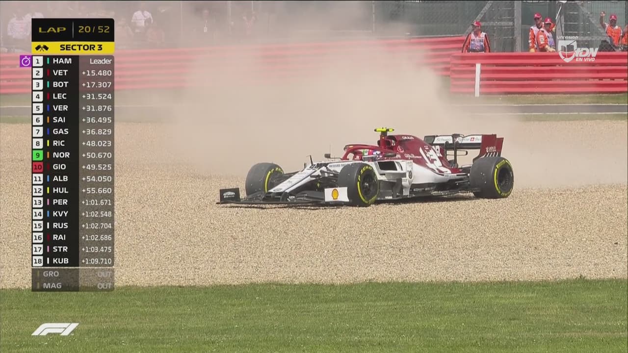 El piloto italiana de Alfa Romeo perdió total control de su monoplaza, mismo que se deslizó hacia la grava.