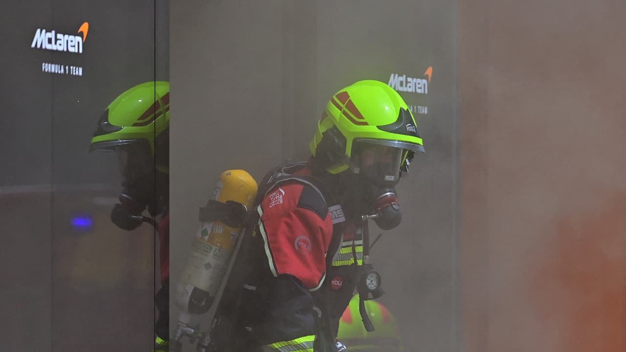 El 'motorhome' de McLaren sufre incendio: reportes indican que dos personas fueron llevadas en ambulancia.