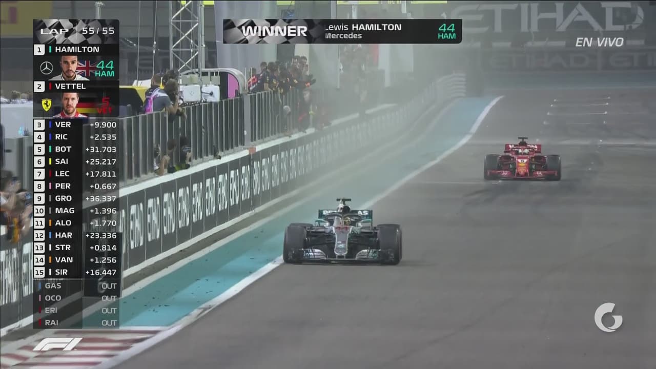 El británico Lewis Hamilton (Mercedes) ganó este domingo el Gran Premio de Abu Dabi de la Fórmula 1 en el circuito de Yas Marina, la última carrera de la temporada 2018 y del piloto español Fernando Alonso, quien se retira tras una sumamente e histórica carrera.