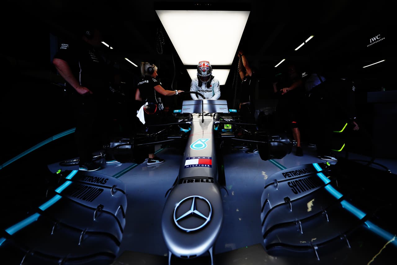 Escapando de la lluvia intensa en Silverstone, este sábado se vivió la sesión de clasificación para la carrera de este domingo con los autos de Mercedes siendo los más veloces.