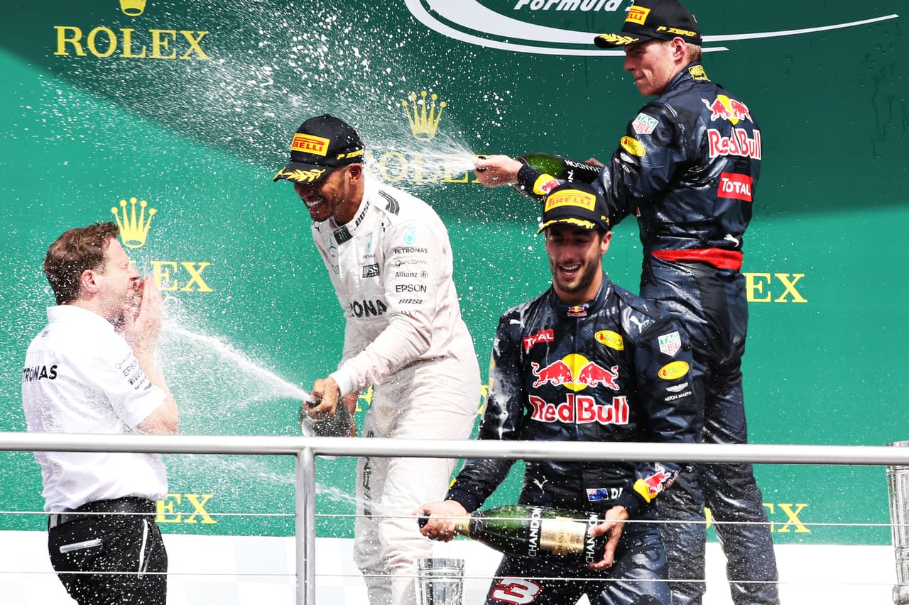 Hamilton, de 31 años, logró su cuadragésima novena victoria en Fórmula Uno, la sexta del año, al imponerse en la pista germana por delante de los dos pilotos de Red Bull, el australiano Daniel Ricciardo y el holandés Max Verstappen, segundo y tercero, respectivamente.