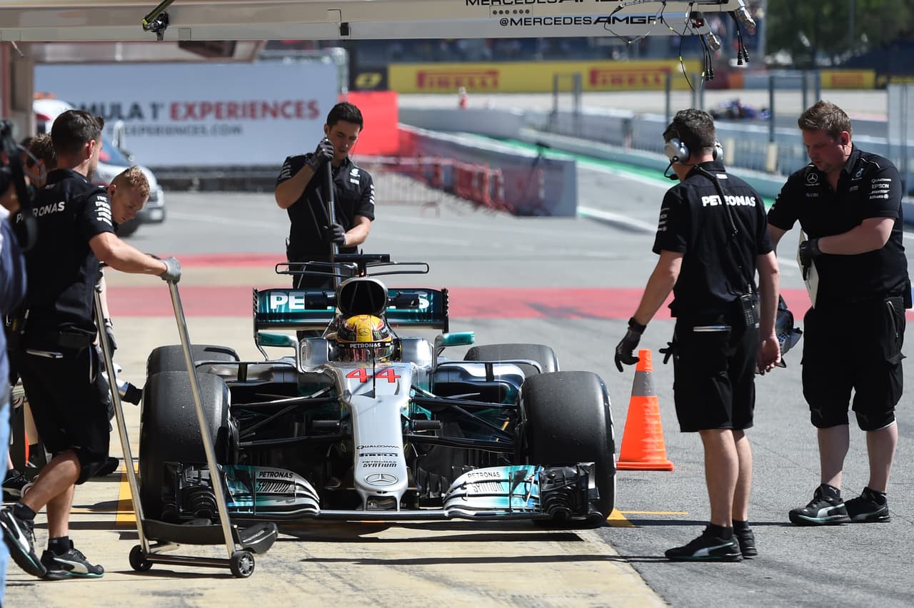 MONTMELO, SPAIN - MAY 12: Lewis Hamilton of Great Britain driving the (44) Mercedes AMG Petronas F1 Team Mercedes F1 WO8 on track during practice for the Spanish Formula One Grand Prix at Circuit de Catalunya on May 12, 2017 in Montmelo, Spain. (Photo by Mark Thompson/Getty Images)