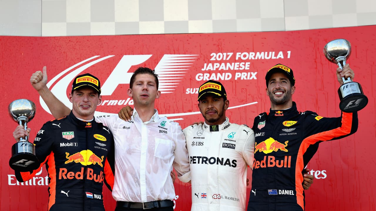 Kimi es quinto en el certamen (con 148 puntos), entre los dos pilotos de Red Bull, el australiano Daniel Ricciardo (192) y el holandés Max Verstappen (111), que, con una victoria cada uno, son los otros dos que también subieron a lo alto del podio durante 2017.