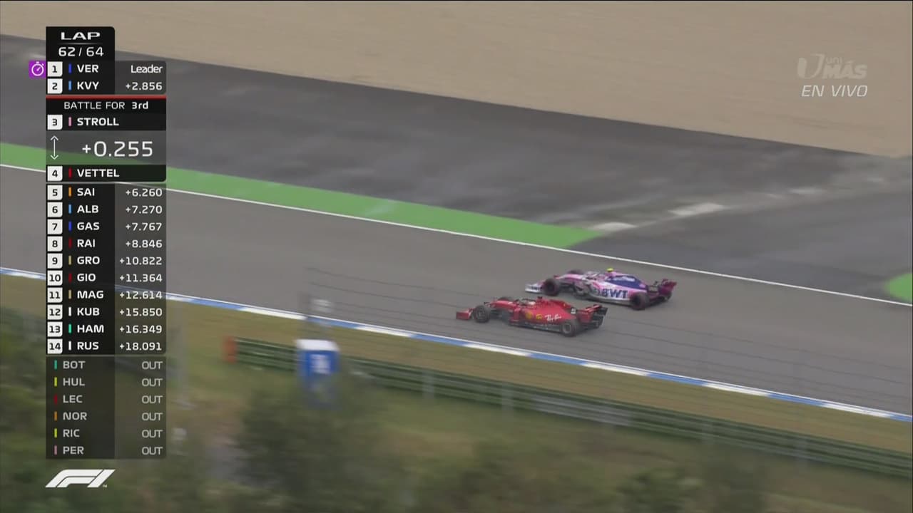 El alemán rebasó a Stroll y Kvyat para colarse a la segunda plaza, mientras que el francés se quedó sin llanta en la vuelta 62.