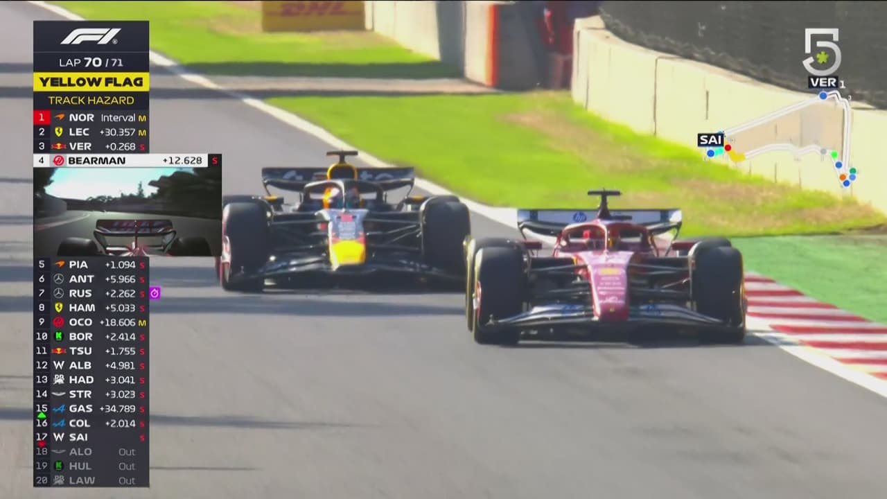 En las últimas vueltas, Max estaba a nada de rebasar al Ferrari, pero un Virtual Safety Car paró todo.