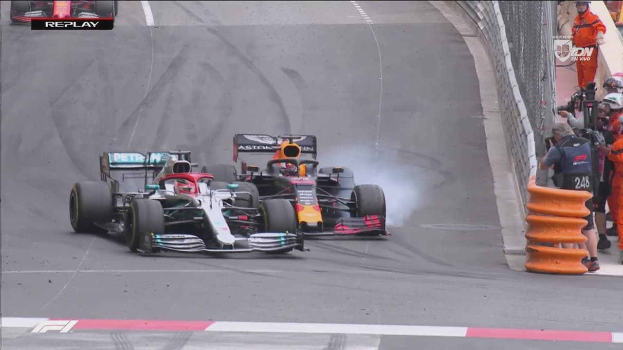 El piloto holandés intentó un rebase temerario, pero alcanzó a rozar el carro de Lewis y las posiciones de ambos se conservaron a dos vueltas del final.