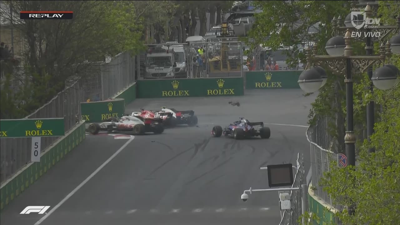 El mexicano estuvo cerca de quedarse fuera del GP de Azerbaiyán, por fortuna el ‘toque’ de su automóvil fue mínimo.