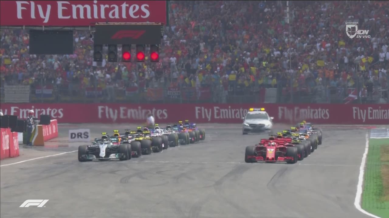 Sebastian Vettel mantuvo el primer lugar de la cerrera en el arranque, mientras que Bottas siguió en la segunda posición.