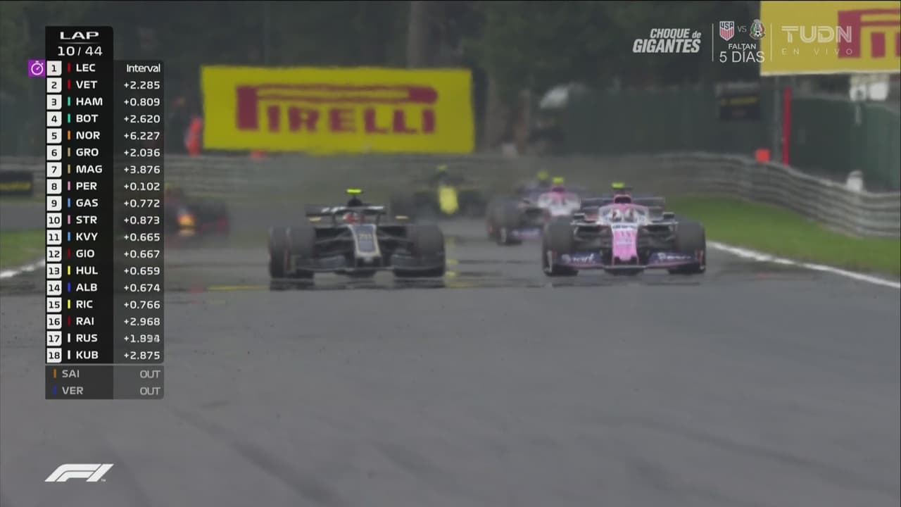 En la vuelta 10 del Gran Premio de Bélgica, el piloto mexicano de Racing Point evadió con maestría al danés para quedar en la séptima posición.
