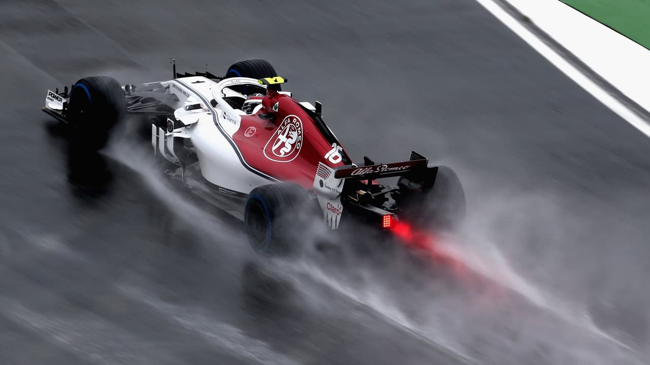 El piloto Charles Leclerc de la escudería Sauber controló de manera brillante el inesperado giro que realizó su coche, quedando de frente de nuevo a la pista. Aquí el instante.