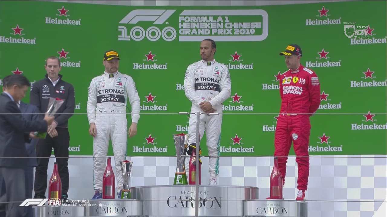 El británico estuvo acompañado por su compañero Valtteri Bottas, y Sebastian Vettel de Ferrari en el tercer puesto.