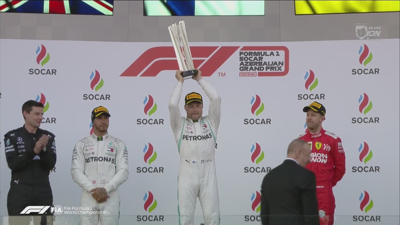 El finlandés Valtteri Bottas se adjudicó la victoria del Gran Premio de Azerbaiyán en una carrera que incrementa la ventaja dominante de Mercedes Benz en la Fórmula Uno. Ferrari pagó caros los errores del sábado de calificación, pero al menos rescatan el podio con Vettel que sube al festejo en tercero y Charles Leclerc consiguió la vuelta rápida de la carrera y el punto extra.