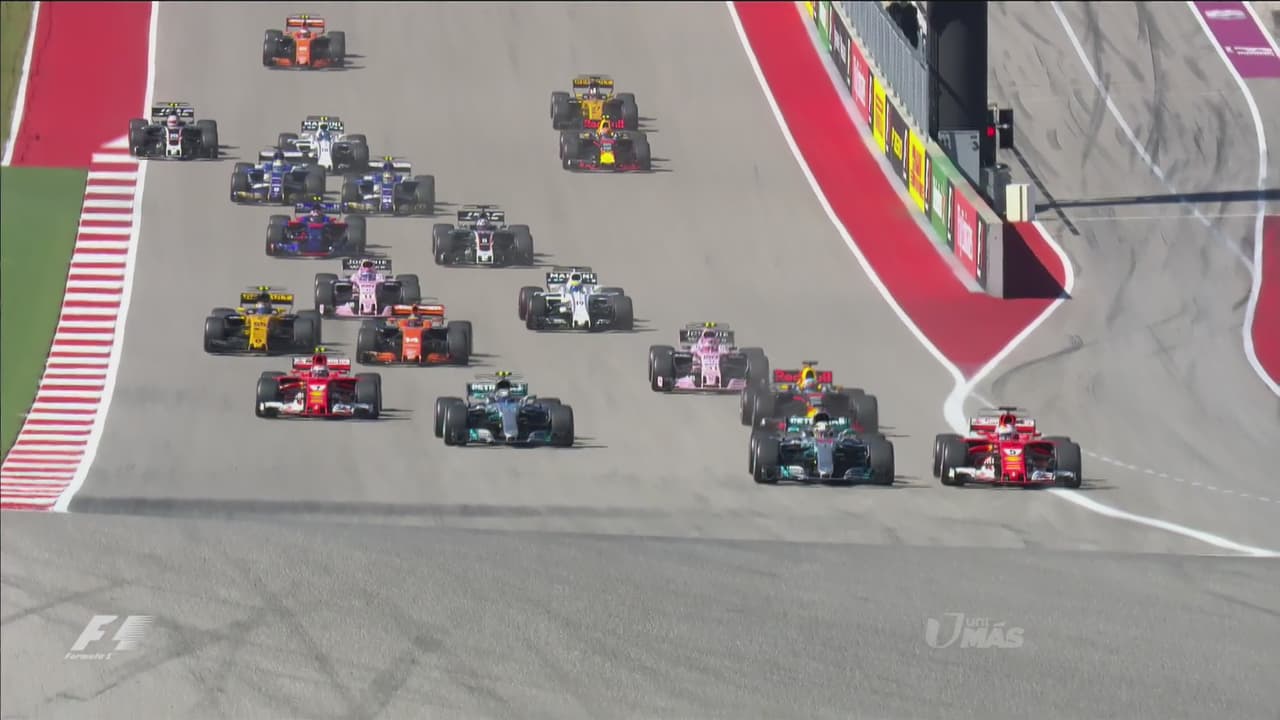 Se dio la partida en el circuito de Austin en Texas, con Sebastian Vettel adelantando a Lewis Hamilton para liderar la carrera desde el inicio.
