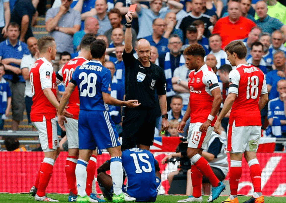 Las cosas se le complican mucho más a los de Antonio Conte, que venían jugando mejor en este segundo tiempo. Víctor Moses es expulsado tras recibir su segunda amonestación por simular una falta dentro del área.