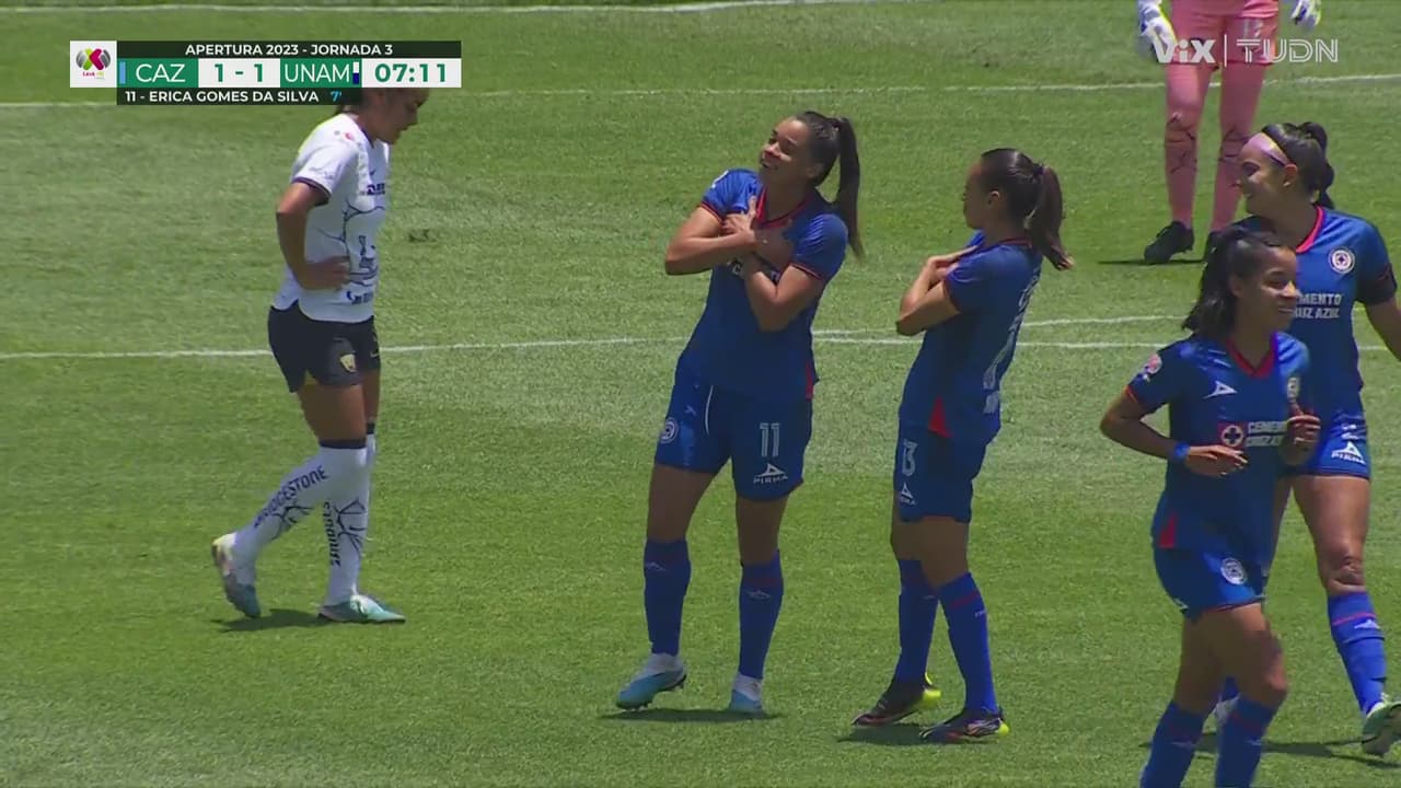 Gracias a la pifia garrafal de la defensa universitaria, Erica Gomes rob la esférica tras un mal pase del rival y anota a los 6'.