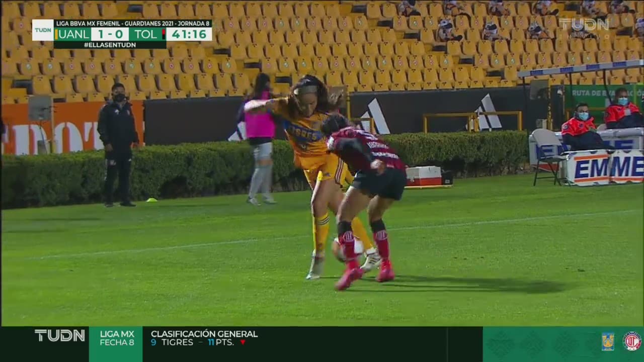 La delantera de las Tigres se quitó la marca de Havi Ibarra con un auténtico lujo imperdible al 40’.