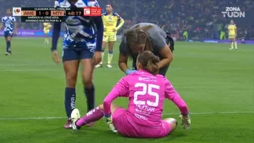 La portera de Rayadas sintió una molestia en el muslo y el duelo tuvo que ser pausado para que recibiera atención médica.