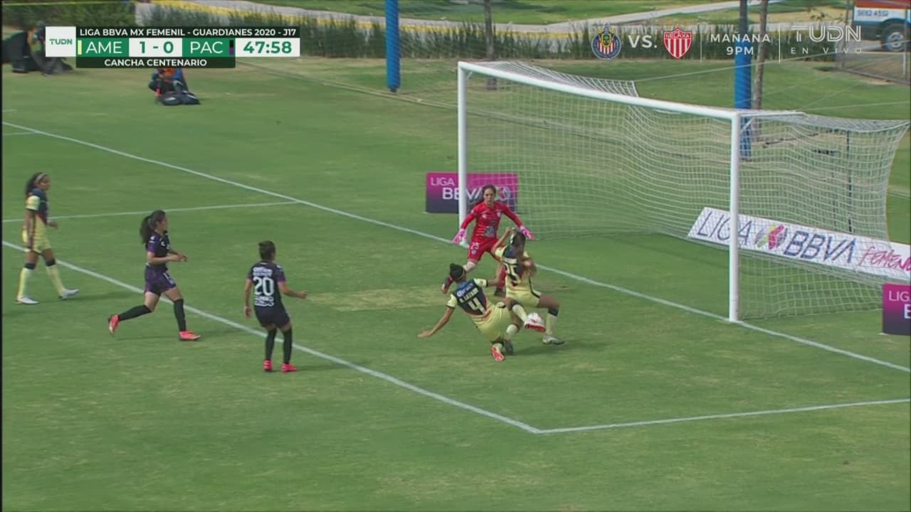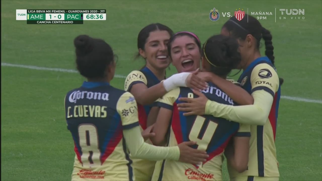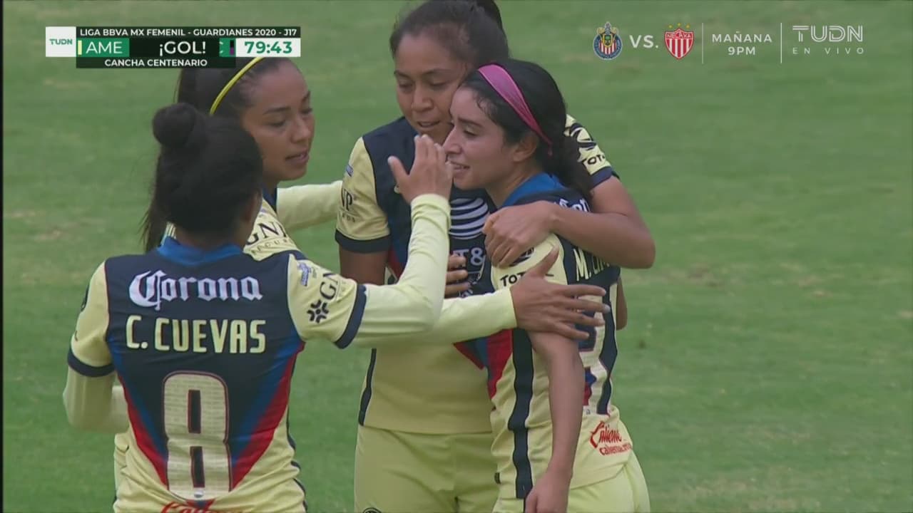 América aumentó su ventaja de la misma manera con una pelota parada al minuto 69 con otro cabezazo de Ana Gaby Lozada, que además celebró su partido 100, y la jugadora de la Águilas metió un testarazo que Mónica Alvarado no pudo rechazar; Gabriela marcó su segundo gol con el conjunto azulcrema.